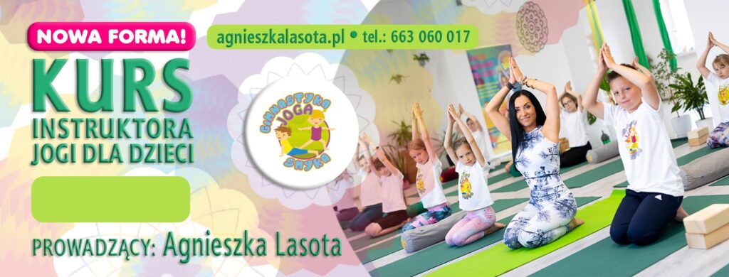 KURS NA INSTRUKTORA JOGI DLA DZIECI – dający uprawnienia certyfikat instruktora do prowadzenia zajęć w placówkach oświatowych, jak i poza jako zajęcia dodatkowe według programu i metodyki prowadzenia zajęć Agnieszki Lasoty.